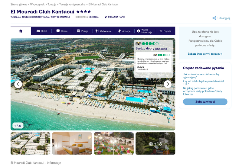 Niedostępność oferty została udokumentowana zrzutem ekranu.