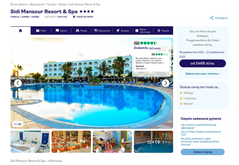 Niedostępność oferty została udokumentowana zrzutem ekranu.
