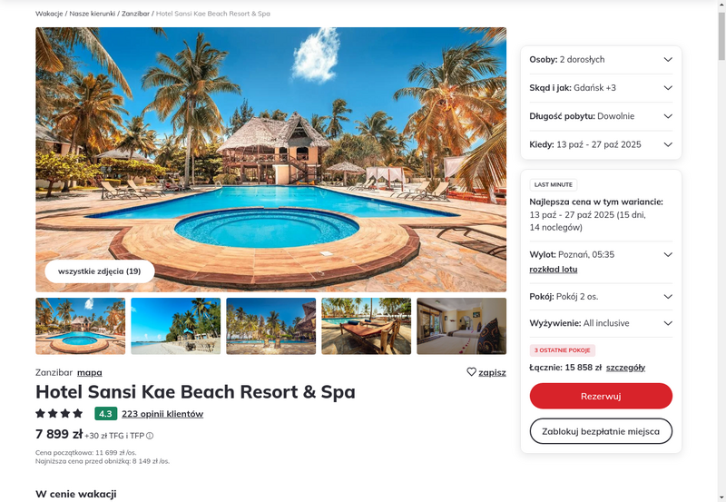 Aktualizacja: Dwa tygodnie przy plaży: Zanzibar, 4* hotel z all inclusive od 5399 zł
