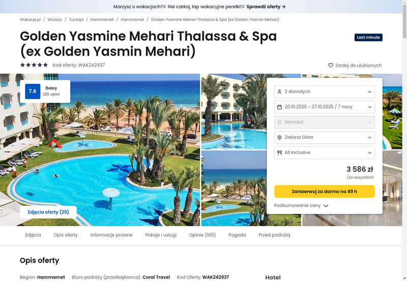 Aktualizacja: Orientalny klimat w Tunezji: 5* hotel z all inclusive za 1750 zł