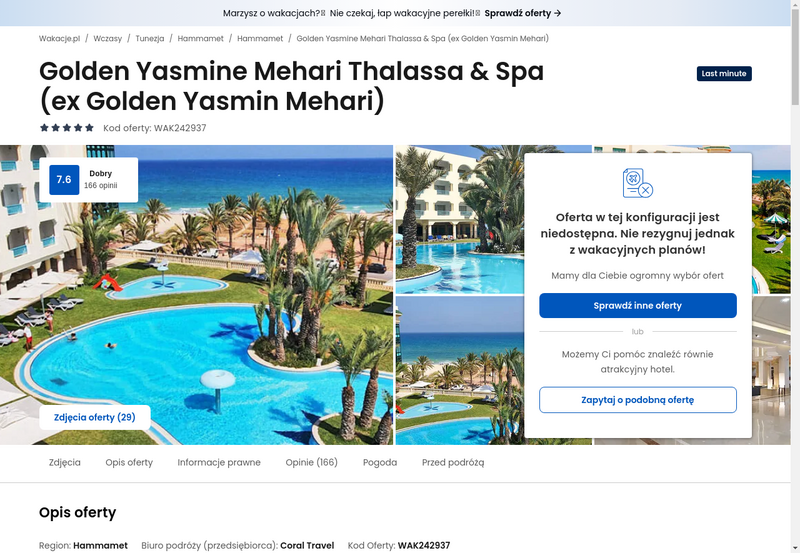 Niedostępność oferty została udokumentowana zrzutem ekranu.