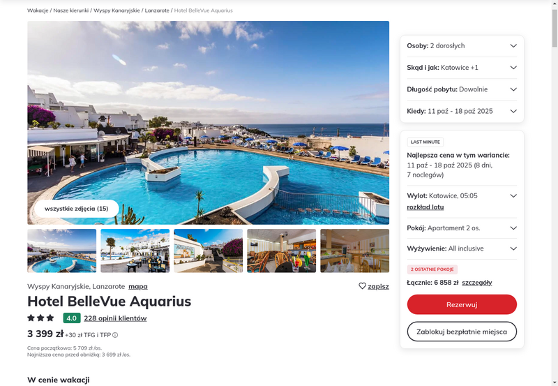 Aktualizacja: Wyspy Kanaryjskie (Lanzarote) last minute: 3* hotel z all inclusive za 2399 zł