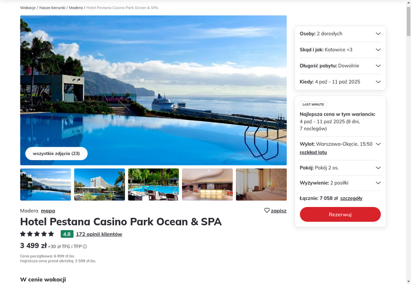 Aktualizacja: Madera last minute w wersji lux: 5* hotel z wyżywieniem i basenami (infinity i na dachu) za 2699 zł