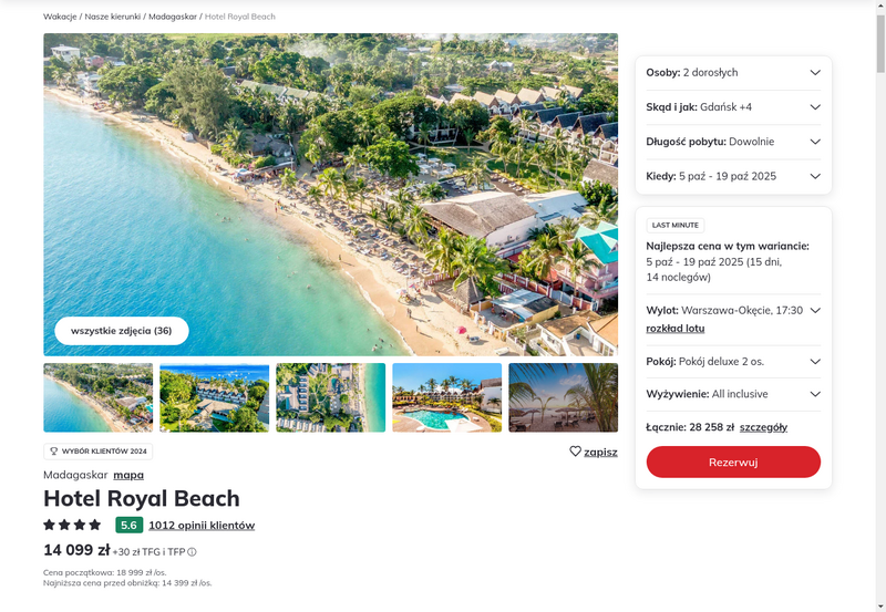 Aktualizacja: Długi wypoczynek na Madagaskarze: 14 dni w 4* hotelu z all inclusive za 6199 zł