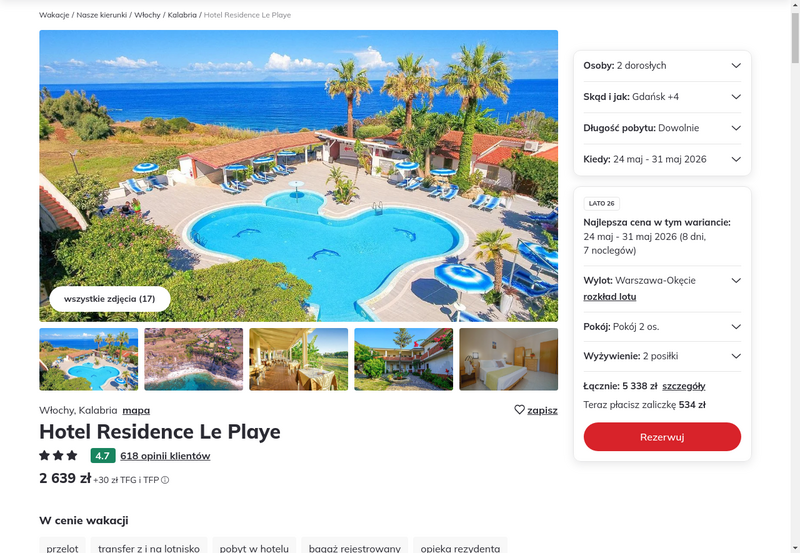 Aktualizacja: Słoneczne południe Włoch: Kalabria, 3* hotel z wyżywieniem za 1799 zł