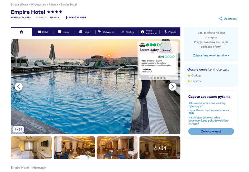 Niedostępność oferty została udokumentowana zrzutem ekranu.