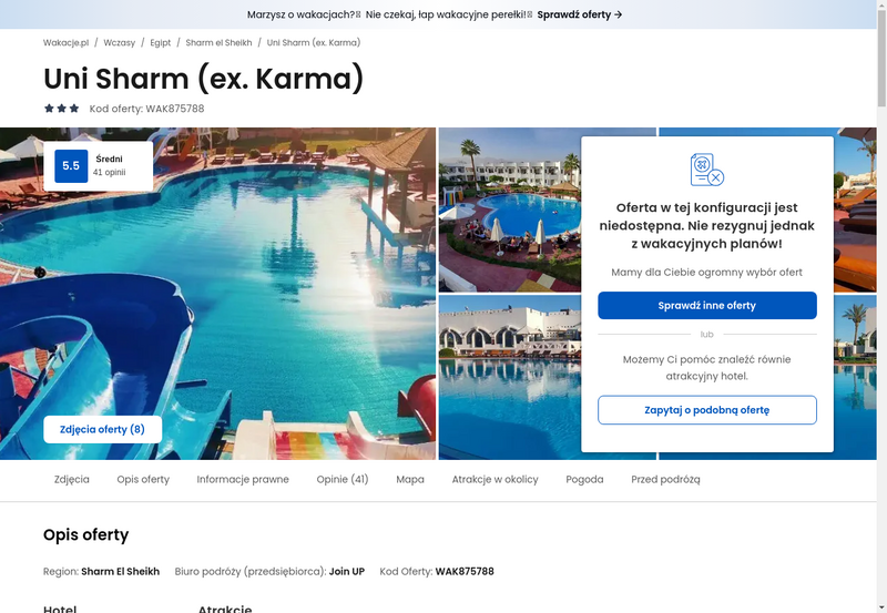 Niedostępność oferty została udokumentowana zrzutem ekranu.