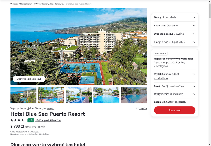 Aktualizacja: Jesienne słońce na Wyspach Kanaryjskich: Teneryfa, 4* hotel z all inclusive od 2299 zł