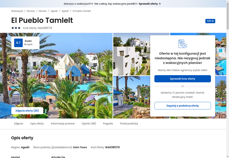 Niedostępność oferty została udokumentowana zrzutem ekranu.