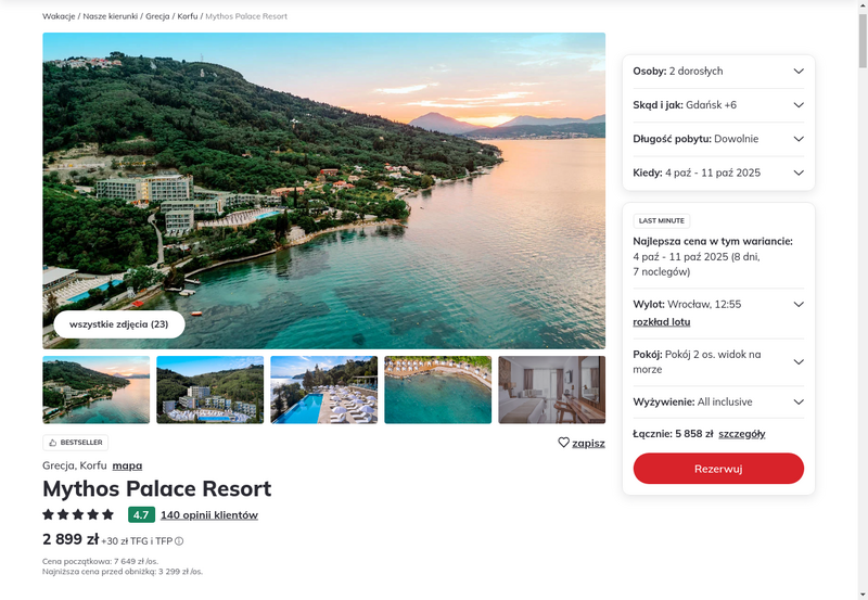 Aktualizacja: Wyspa Korfu w wersji lux: 5* hotel z all inclusive kilka kroków od plaży od 1499 zł!
