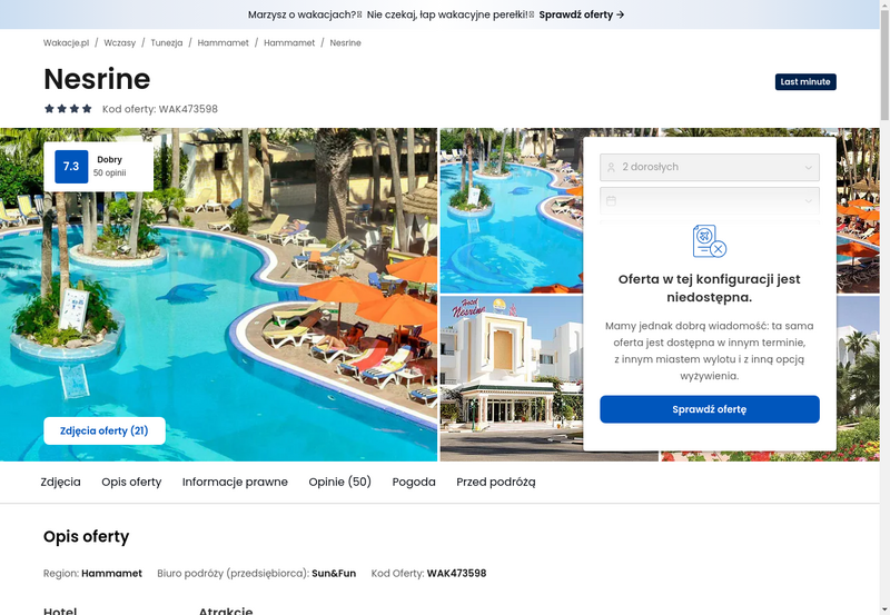 Niedostępność oferty została udokumentowana zrzutem ekranu.
