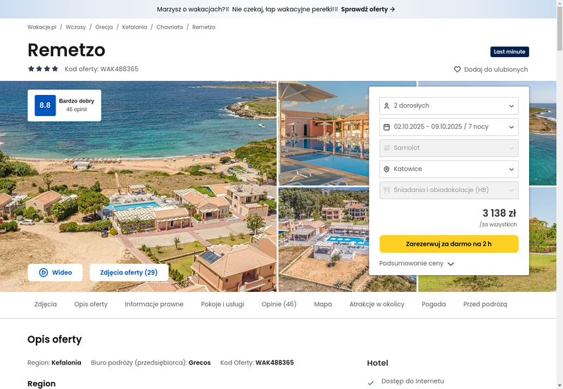 Aktualizacja: Mniej znana grecka wyspa: Kefalonia, 4* hotel z wyżywieniem za 1567 zł