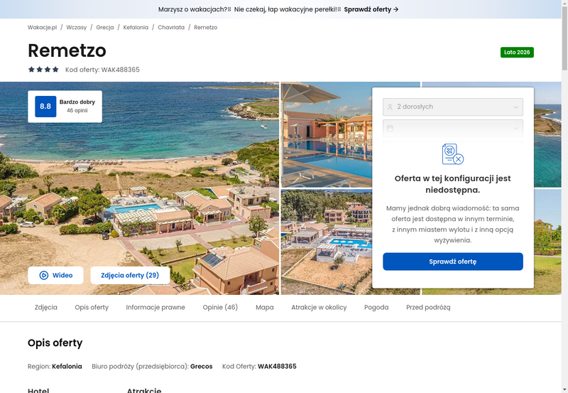 Niedostępność oferty została udokumentowana zrzutem ekranu.
