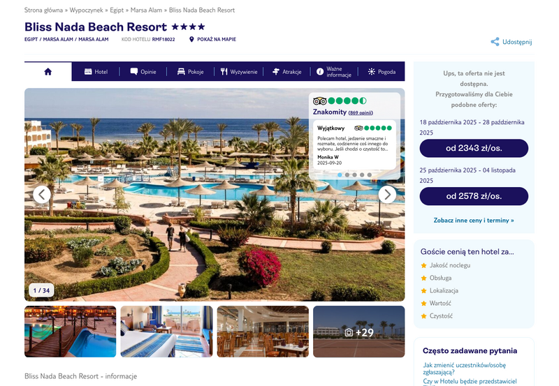 Niedostępność oferty została udokumentowana zrzutem ekranu.