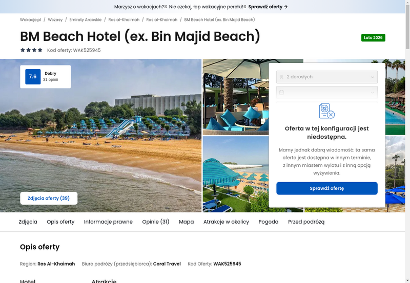 Aktualizacja: Zaplanuj urlop w przyszłym roku: ZEA, 4* hotel z all inclusive przy plaży od 2543 zł