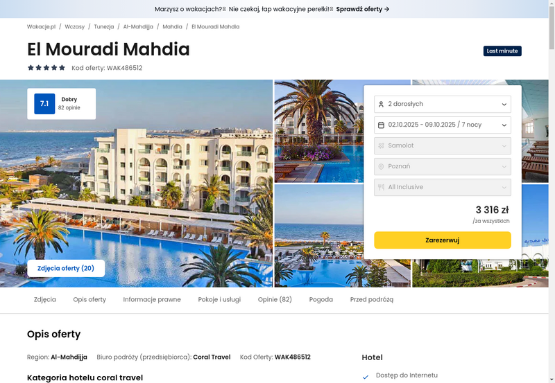 Misją Lastminuter.pl jest przedstawienie Ci najlepszych zdaniem naszej redakcji okazji na podróże. Opisujemy oferty znalezione przez nas w internecie i wskazujemy adresy internetowe, pod którymi samodzielnie możesz wykupić podróż lub elementy podróży. Ceny w artykułach są aktualne w chwili publikacji. Możemy otrzymywać wynagrodzenie od partnerów handlowych, do których Cię przekierowujemy. Nie ma to wpływu na cenę Twojej wycieczki. Powielanie publikacji zabronione.
