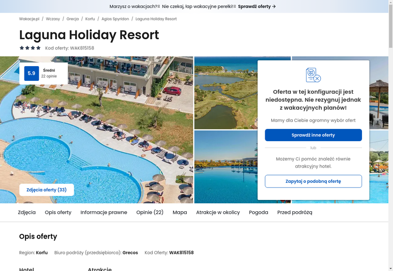Niedostępność oferty została udokumentowana zrzutem ekranu.