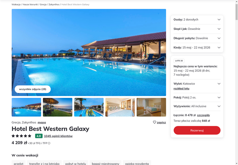 Aktualizacja: Relaks w komfortowych warunkach: Zakintos, 5* hotel z all inclusive przy plaży za 1699 zł