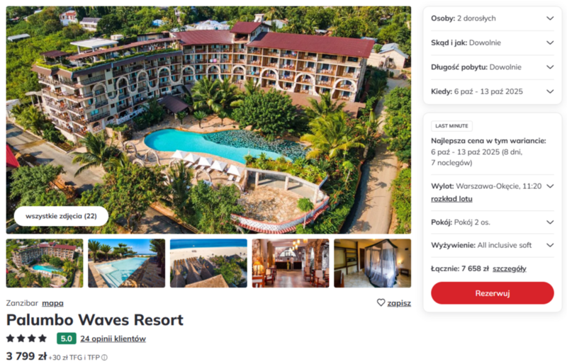 Wyloty do Tanzanii z Katowic, Poznania i Warszawy. W czasie wyjazdu można skorzystać z ciekawej oferty pobytu w Palumbo Waves Resort, czterogwiazdkowym hotelu, który cieszy się pozytywnymi opiniami i jest doceniany za wysoki standard usług.