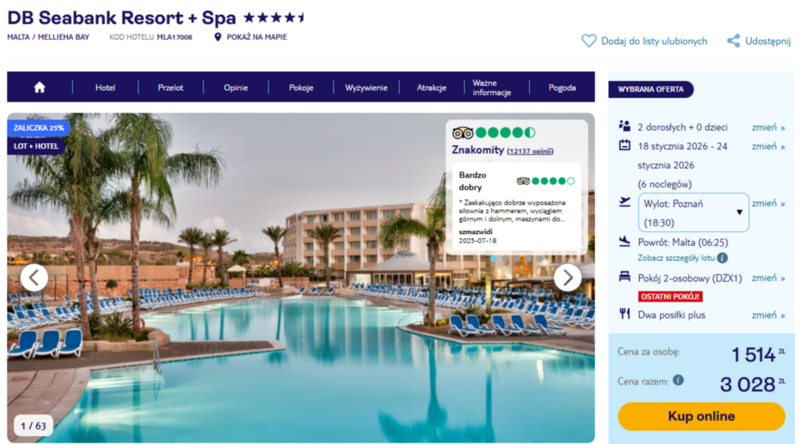 Malta to kierunek, który łączy urok śródziemnomorskiej wyspy z fascynującą historią. Spacerując uliczkami Valletty, odwiedzając klimatyczną Mdinę czy wybierając się na wycieczkę na Gozo, można poczuć wyjątkowy klimat tego miejsca. Wiele z tych atrakcji jest łatwo dostępnych – przystanki autobusowe i port promowy znajdują się w pobliżu hotelu, co znacznie ułatwia zwiedzanie.