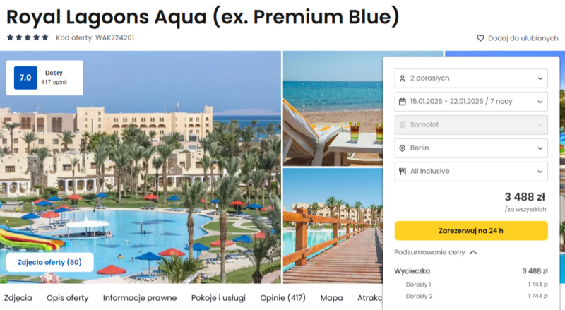 Wylot z Berlina do słonecznej Hurghady to świetna okazja na chwilę odpoczynku od codzienności, zwłaszcza w czasie zimy. Na miejscu czeka hotel Royal Lagoons Aqua, który oferuje 366 wygodnych pokoi – przestronne wnętrza i przyjazna obsługa zbierają pozytywne opinie, co z pewnością przełoży się na komfortowy pobyt.