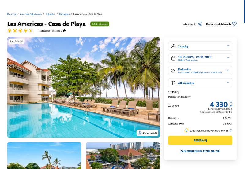 Aktualizacja: Wypoczynek w dalekiej Kolumbii: 5* hotel z all inclusive przy plaży od 4251 zł