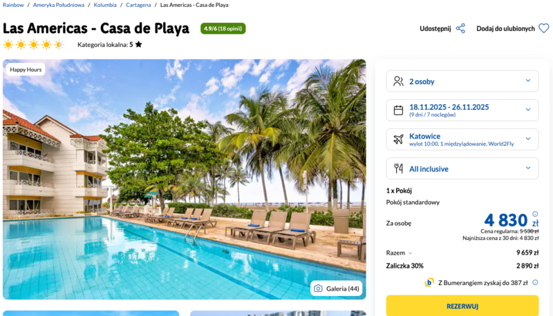 Wypoczynek w dalekiej Kolumbii: 5* hotel z all inclusive przy plaży od 4830 zł