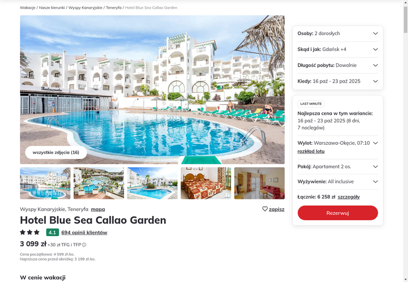 Aktualizacja: Wypoczynek na malowniczej Teneryfie: 3* hotel z all inclusive za 1799 zł