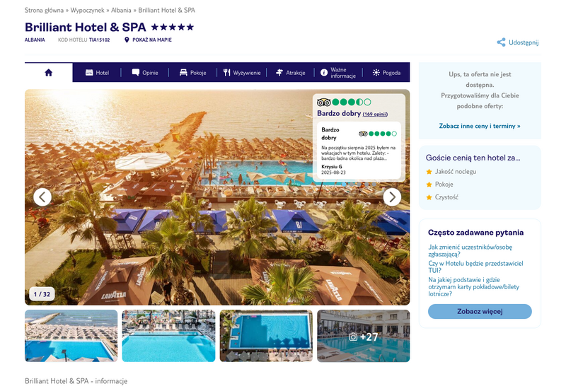 Niedostępność oferty została udokumentowana zrzutem ekranu.