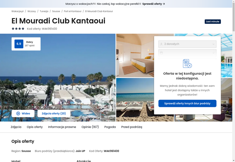 Niedostępność oferty została udokumentowana zrzutem ekranu.