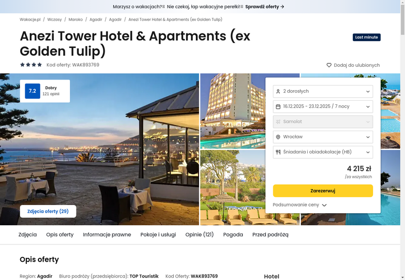 Misją Lastminuter.pl jest przedstawienie Ci najlepszych zdaniem naszej redakcji okazji na podróże. Opisujemy oferty znalezione przez nas w internecie i wskazujemy adresy internetowe, pod którymi samodzielnie możesz wykupić podróż lub elementy podróży. Ceny w artykułach są aktualne w chwili publikacji. Możemy otrzymywać wynagrodzenie od partnerów handlowych, do których Cię przekierowujemy. Nie ma to wpływu na cenę Twojej wycieczki. Powielanie publikacji zabronione.