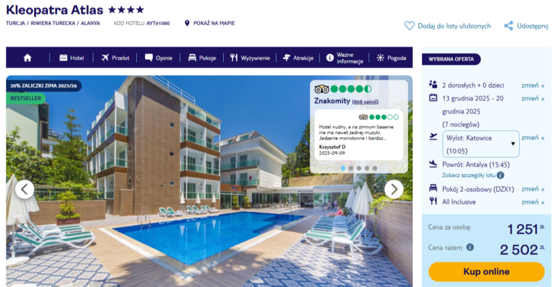 Dla tych, którzy szukają niedrogiego wypoczynku nad morzem, z wygodną formułą pobytu i bez potrzeby długiego planowania, ten kierunek może być ciekawą propozycją na urlop poza sezonem.