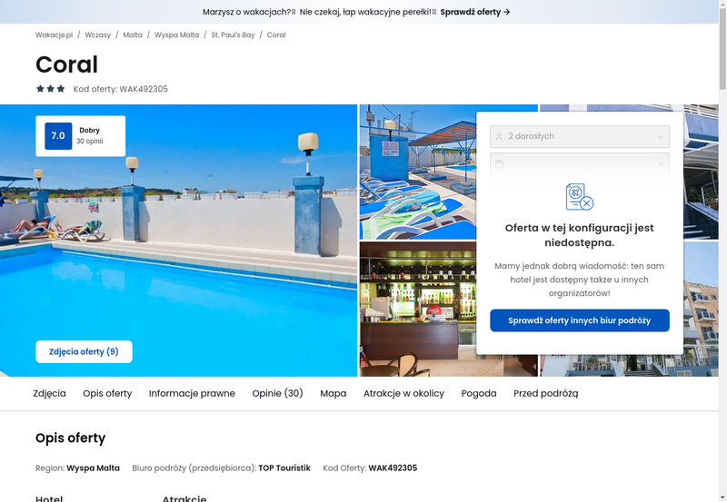 Niedostępność oferty została udokumentowana zrzutem ekranu.