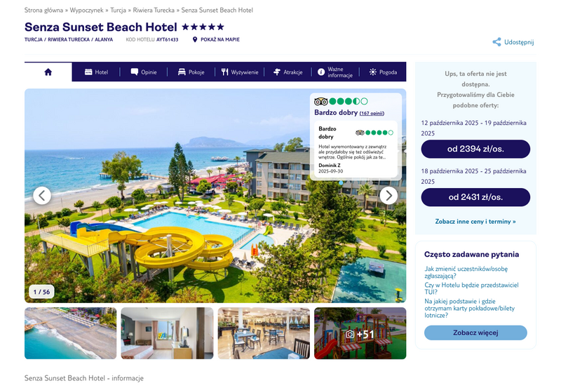 Niedostępność oferty została udokumentowana zrzutem ekranu.