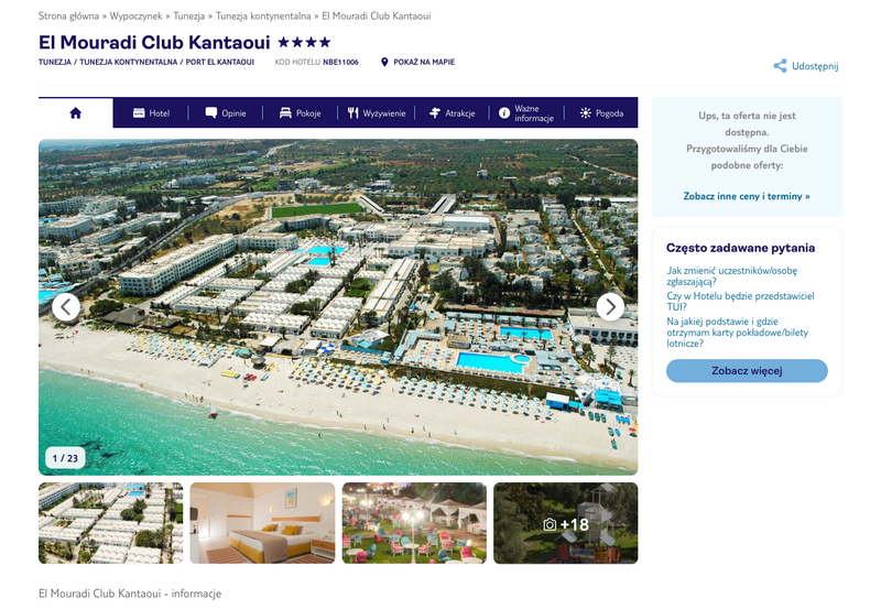 Niedostępność oferty została udokumentowana zrzutem ekranu.