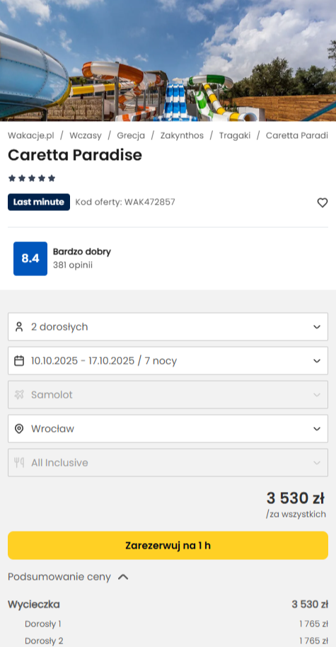 Hotel Caretta Paradise to miejsce stworzone z myślą o komforcie i dobrej zabawie. Nowoczesne wnętrza, opcja all inclusive i mnóstwo atrakcji to tylko początek – szczególnie docenią to rodziny z dziećmi. Aquapark i animacje prowadzone przez profesjonalnych animatorów zapewnią sporo rozrywki zarówno najmłodszym, jak i dorosłym. Goście często wspominają o czystości na terenie obiektu i miłej, pomocnej obsłudze, co zdecydowanie sprzyja beztroskiemu wypoczynkowi.