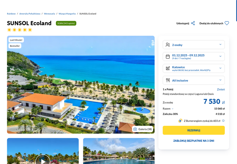 Aktualizacja: Odpocznij w egzotycznej scenerii: wczasy w Wenezueli, 5* hotel z all inclusive za 5951 zł