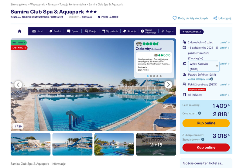 Misją Lastminuter.pl jest przedstawienie Ci najlepszych zdaniem naszej redakcji okazji na podróże. Opisujemy oferty znalezione przez nas w internecie i wskazujemy adresy internetowe, pod którymi samodzielnie możesz wykupić podróż lub elementy podróży. Ceny w artykułach są aktualne w chwili publikacji. Możemy otrzymywać wynagrodzenie od partnerów handlowych, do których Cię przekierowujemy. Nie ma to wpływu na cenę Twojej wycieczki. Powielanie publikacji zabronione.