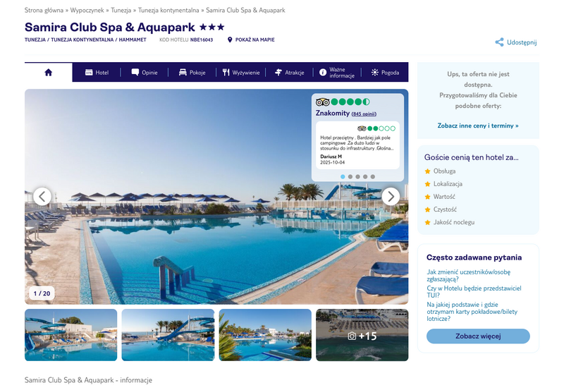 Niedostępność oferty została udokumentowana zrzutem ekranu.