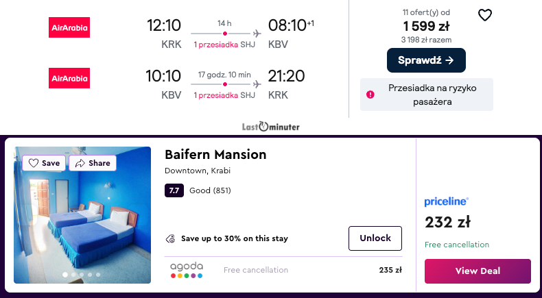 Dostępne połączenia cieszą się sporym zainteresowaniem, a ich atutami są nie tylko atrakcyjne ceny i dogodne godziny lotów, lecz także sprawna przesiadka w Sharjah. Dzięki temu cała podróż przebiega wygodnie i bez większego stresu, co z pewnością doceni każdy, kto planuje swój urlop.Tajlandia kusi pogodą. W Krabi w tym czasie można liczyć na słońce i temperatury w okolicach 30 stopni – warunki wręcz stworzone do plażowania, odkrywania lokalnych smaków i spacerowania po malowniczych zakątkach.