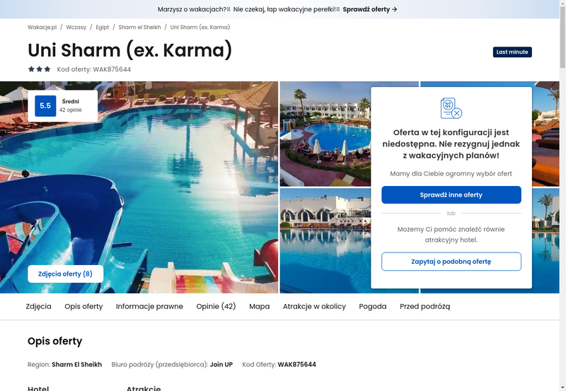 Niedostępność oferty została udokumentowana zrzutem ekranu.