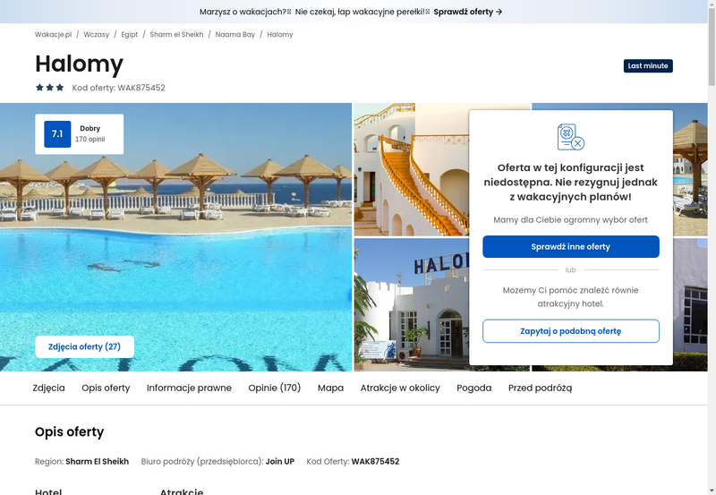Niedostępność oferty została udokumentowana zrzutem ekranu.