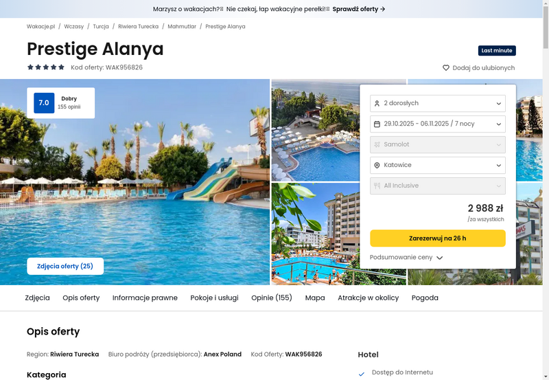 Misją Lastminuter.pl jest przedstawienie Ci najlepszych zdaniem naszej redakcji okazji na podróże. Opisujemy oferty znalezione przez nas w internecie i wskazujemy adresy internetowe, pod którymi samodzielnie możesz wykupić podróż lub elementy podróży. Ceny w artykułach są aktualne w chwili publikacji. Możemy otrzymywać wynagrodzenie od partnerów handlowych, do których Cię przekierowujemy. Nie ma to wpływu na cenę Twojej wycieczki. Powielanie publikacji zabronione.