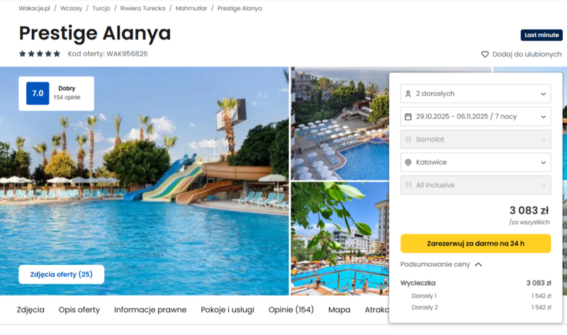 Misją Lastminuter.pl jest przedstawienie Ci najlepszych zdaniem naszej redakcji okazji na podróże. Opisujemy oferty znalezione przez nas w internecie i wskazujemy adresy internetowe, pod którymi samodzielnie możesz wykupić podróż lub elementy podróży. Ceny w artykułach są aktualne w chwili publikacji. Możemy otrzymywać wynagrodzenie od partnerów handlowych, do których Cię przekierowujemy. Nie ma to wpływu na cenę Twojej wycieczki. Powielanie publikacji zabronione.