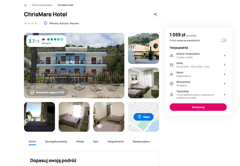 Cena wycieczki wygląda naprawdę zachęcająco, zwłaszcza biorąc pod uwagę standard hotelu, jego położenie przy plaży i atmosferę sprzyjającą wypoczynkowi. To propozycja idealna zarówno dla par, jak i rodzin, które szukają słońca, relaksu i nieco włoskiego klimatu w środku zimy.