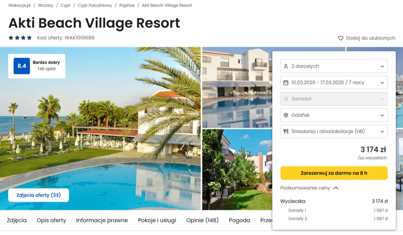 Wyloty z Gdańska, Berlina, Poznania i Katowic. Na miejscu czeka Akti Beach Village Resort – hotel położony tuż przy morzu, otoczony zielenią i spokojem, idealny zarówno na rodzinny wypoczynek, jak i wyjazd we dwoje. Duże, wygodne pokoje oraz smaczne posiłki, które chwalą sobie goście, sprawiają, że łatwo poczuć się tu swobodnie i naprawdę odpocząć.