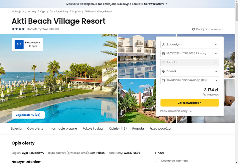 Aktualizacja: Marcowy reset w słońcu: Cypr, 4* hotel z wyżywieniem od 1587 zł