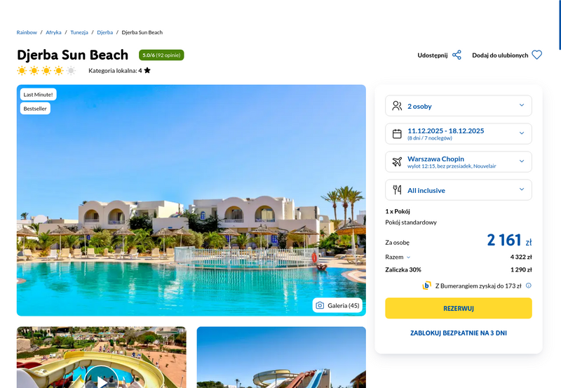 Misją Lastminuter.pl jest przedstawienie Ci najlepszych zdaniem naszej redakcji okazji na podróże. Opisujemy oferty znalezione przez nas w internecie i wskazujemy adresy internetowe, pod którymi samodzielnie możesz wykupić podróż lub elementy podróży. Ceny w artykułach są aktualne w chwili publikacji. Możemy otrzymywać wynagrodzenie od partnerów handlowych, do których Cię przekierowujemy. Nie ma to wpływu na cenę Twojej wycieczki. Powielanie publikacji zabronione.