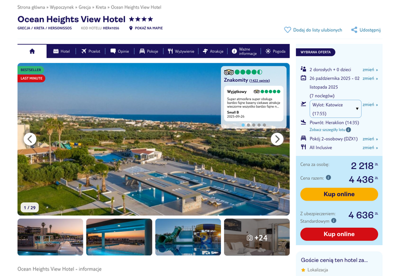 Aktualizacja: Kreta, która zachwyca: bardzo dobrze oceniany 4* hotel z all inclusive od 1899 zł