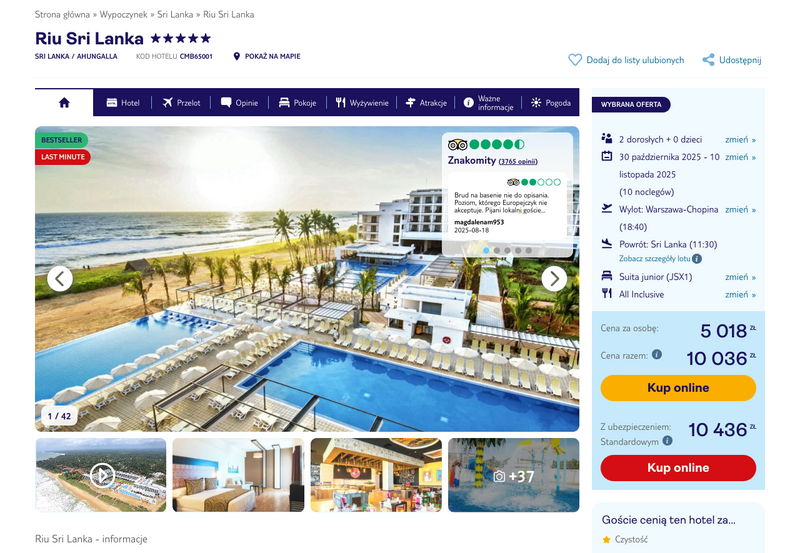 Aktualizacja: Świetny hotel w atrakcyjnej cenie: 10 dni w 5* Riu Sri Lanka z all inclusive za 4798 zł